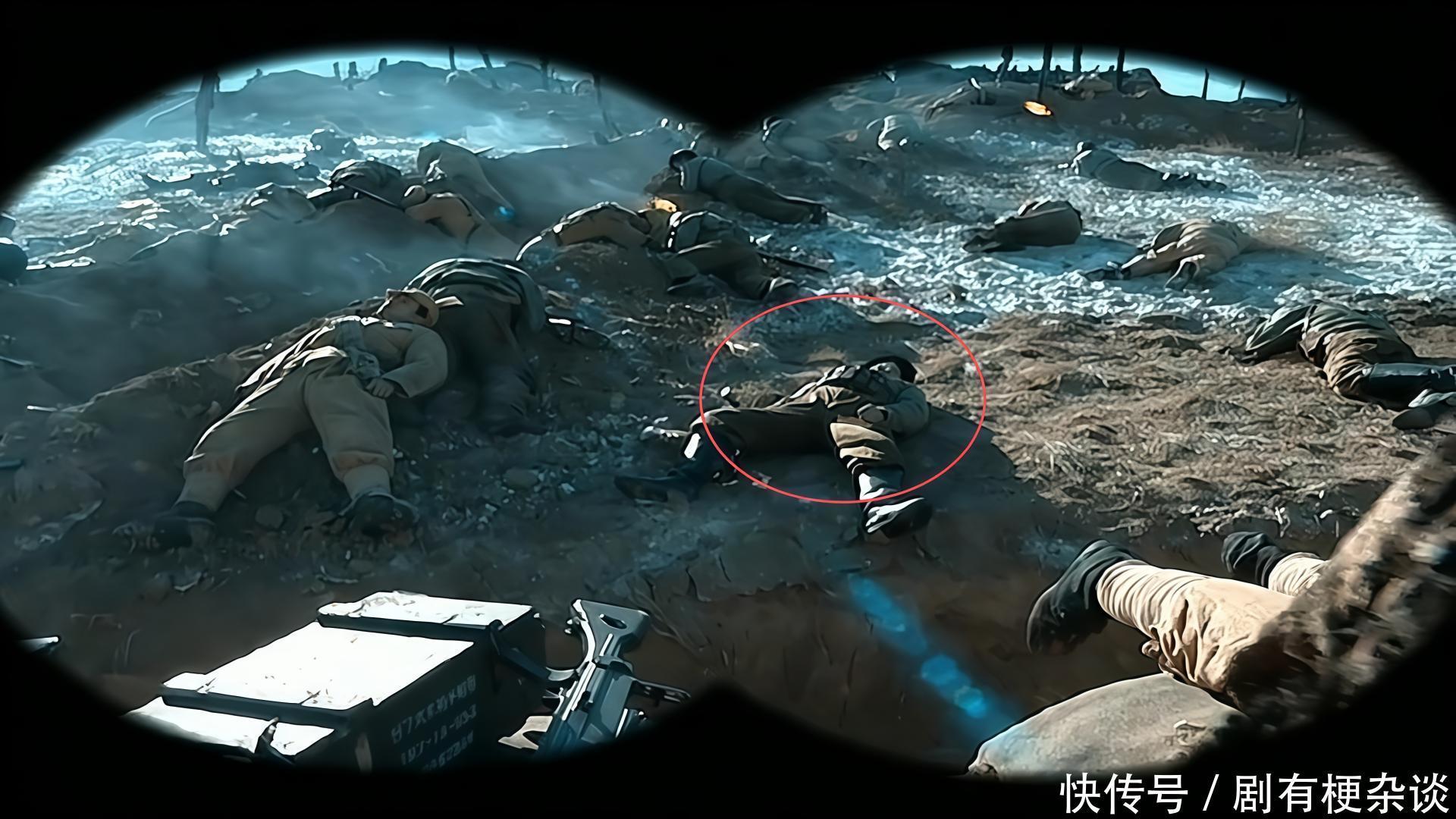 第四个:军官敢死队,楚云飞不是搞了一个军官敢死队吗?当时,有两个敢死队的队员在那里调侃他们是收尸队,可是,这两个角色后来怎么样呢?答案也是死在了战场上,也是在当时同样的镜头里面的另一侧,我们可以看到这位哥们的尸体,不过,有意思的事情是他们刚刚组建敢死队,没一会对面的共军就知道了,可见楚云飞不输反而很奇怪。